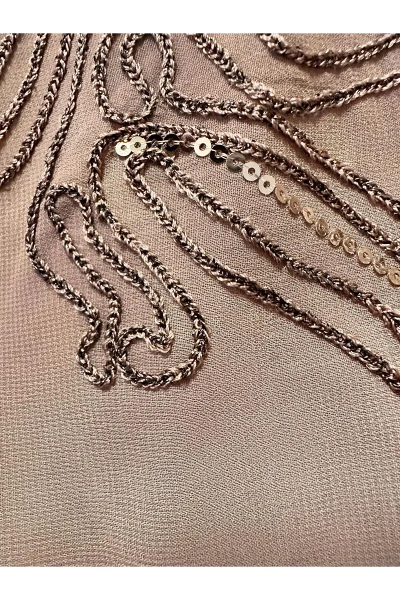 Женское платье-халат с вышивкой пайетками цвета визон | T 3773