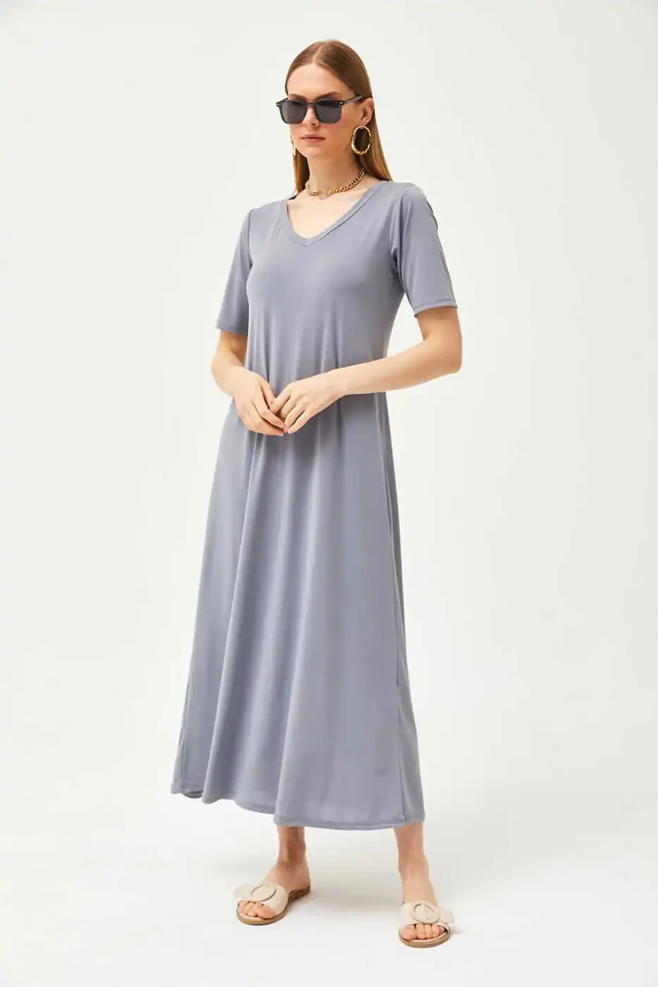 Женское свободное макси-платье с V-образным вырезом угольного цвета - идеальный выбор для женщин, которые ищут стиль и комфорт одновременно. Это станет незаменимой частью вашего гардероба благодаря угольному цвету, подходящему к любому стилю. Платье с V-образным вырезом добавляет изящества вашему стилю, а свободный крой обеспечивает комфорт в течение всего дня. Макси-длина идеально подходит для любого типа фигуры, помогая вам создать стильный и комфортный образ для особых случаев или в повседневной жизни.