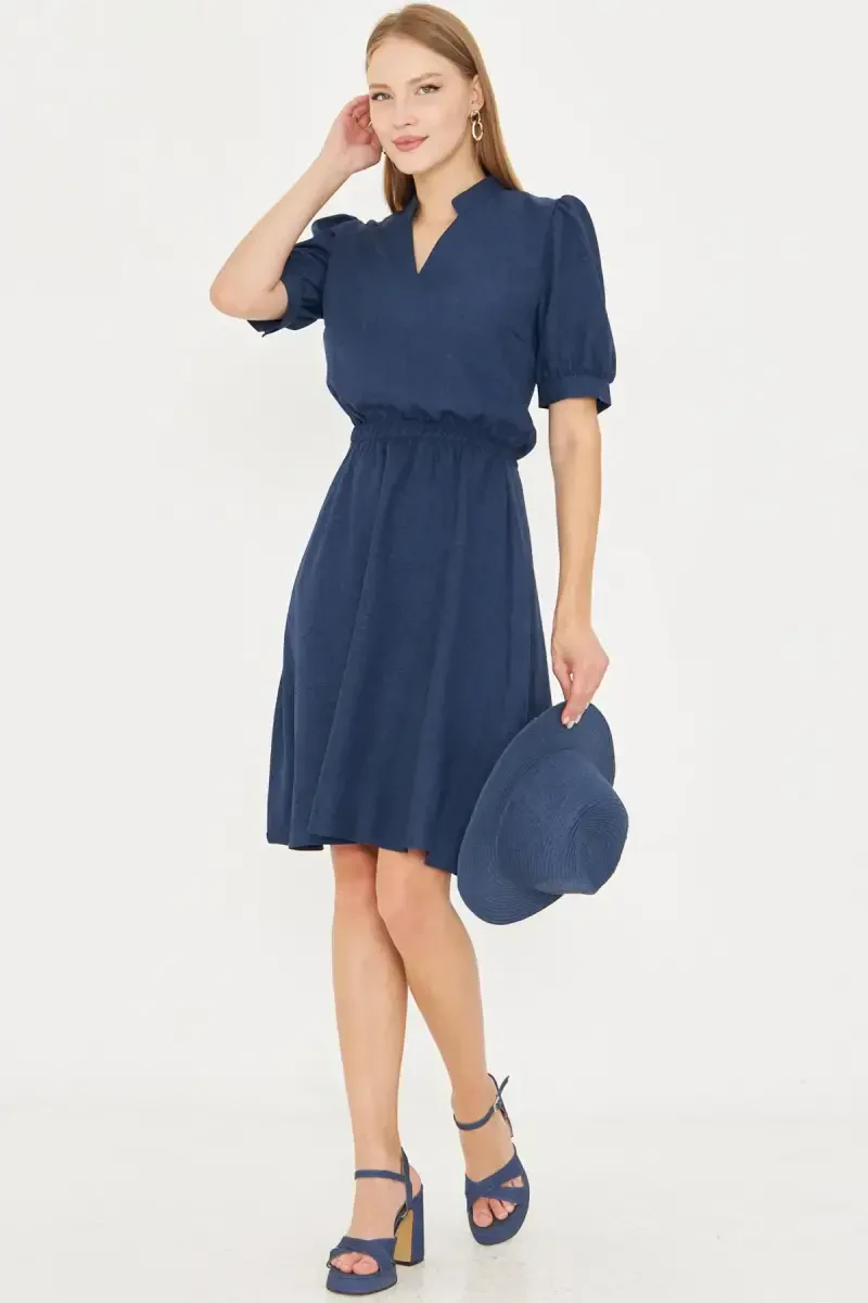 Женское темно-синее платье клеш с V-образным вырезом, эластичной талией и короткими рукавами - это стильный и удобный предмет одежды, который станет незаменимым в вашем гардеробе. Это элегантное платье подойдет для любого случая, от особых мероприятий до повседневной носки, и подчеркнет ваш стиль. Темно-синий цвет подходит к любому тону кожи, а V-образный вырез изящно подчеркивает зону декольте. Эластичная талия обеспечивает идеальную посадку по фигуре и не сковывает движений. Короткие рукава позволяют оставаться в прохладе в жаркую погоду, а юбка-клеш придает женственный вид.Предлагаемое под кодом ARM-25Y001001-Koyu Lacivert, это платье обещает долговечность благодаря качественной ткани. Дышащая структура ткани обеспечивает комфорт в течение всего дня. Детали швов платья тщательно обработаны, и оно безупречно сидит на вас. Независимо от того, сочетаете ли вы его с туфлями на каблуках для создания элегантного образа или с сандалиями для более непринужденного стиля, это платье легко адаптируется к любому наряду.Женское темно-синее платье клеш с V-образным вырезом, эластичной талией и короткими рукавами выделяется не только своим внешним видом, но и простотой в использовании. Благодаря возможности машинной стирки, оно легко чистится и не требует глажки. Это платье легко взять с собой в путешествие, и оно всегда позволит вам выглядеть стильно и ухоженно. Не упустите это платье, которое станет одной из основных вещей в вашем гардеробе! Привлеките всеобщее внимание элегантностью темно-синего цвета и изяществом юбки-клеш. Это платье поможет вам выразить свой стиль как в особые дни, так и в повседневной жизни. Добавьте это платье в свою корзину прямо сейчас, чтобы почувствовать себя особенной и продемонстрировать свою элегантность!