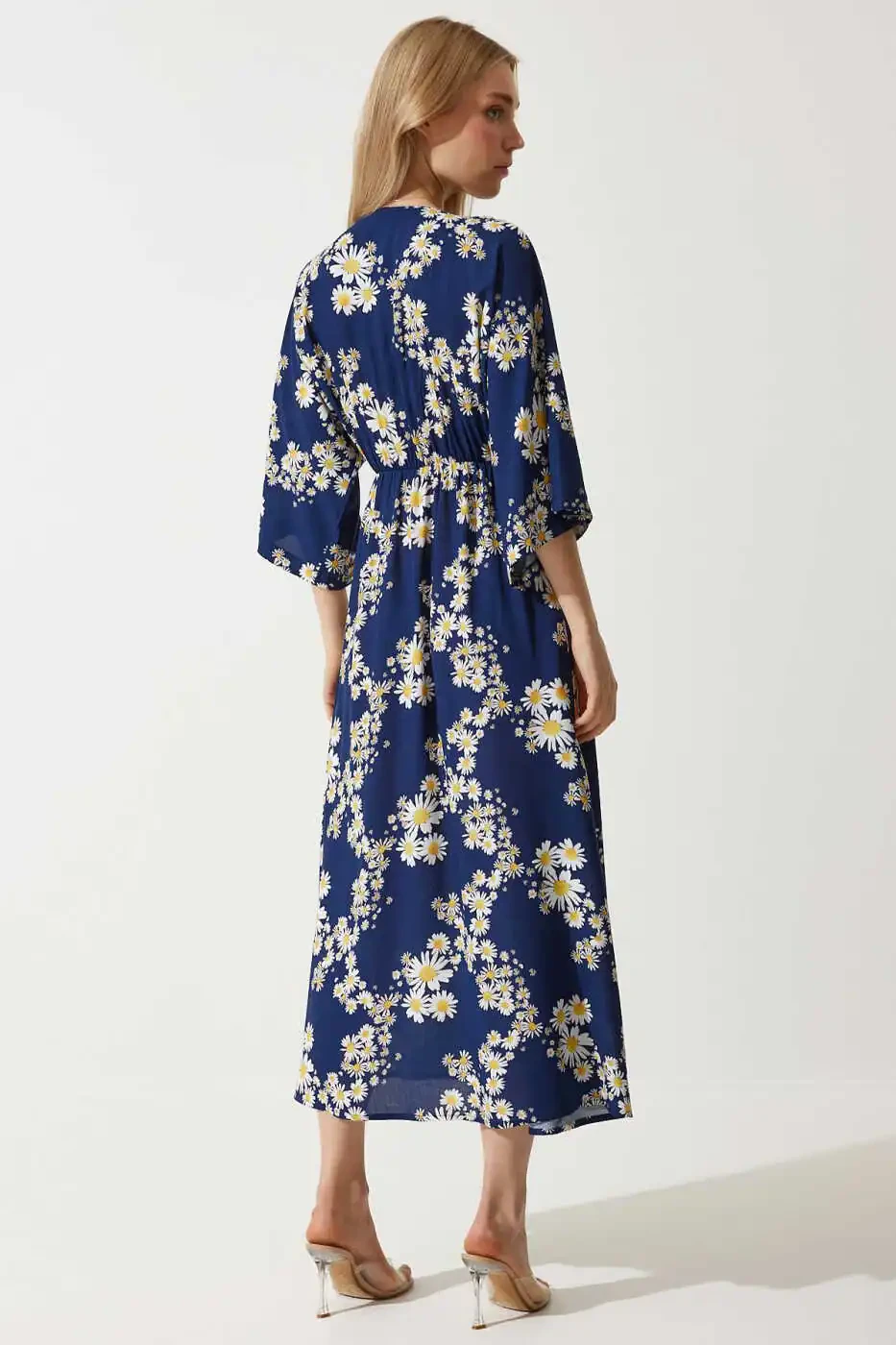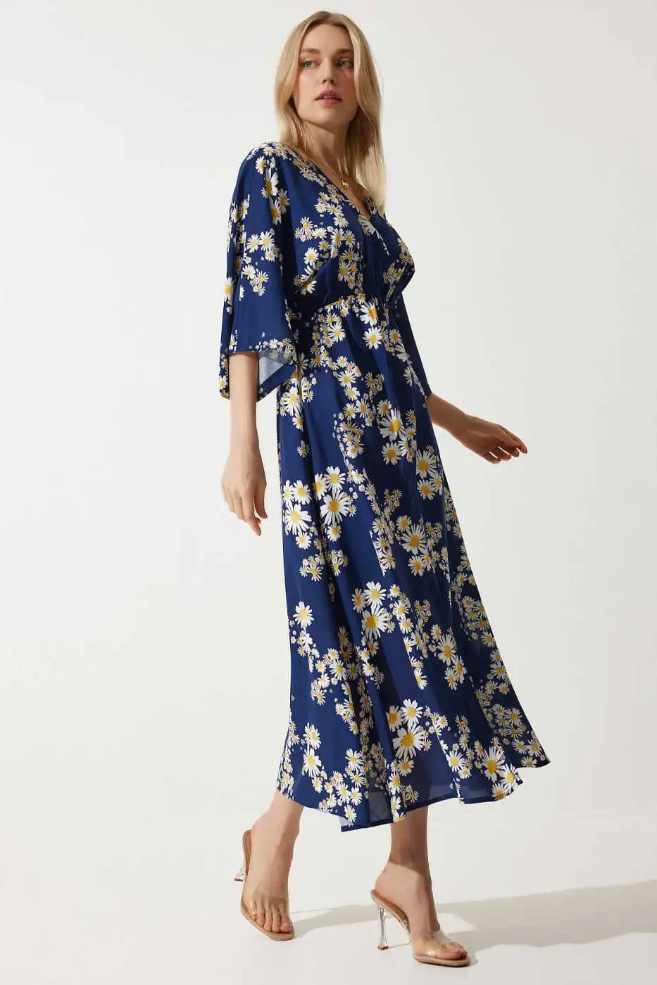 Если вы хотите чувствовать себя комфортно, не жертвуя своим стилем в жаркие летние дни, то женское темно-синее с желтым рисунком летнее вискозное платье с запахом DK00166 создано для вас! Изготовленное из 100% вискозы, это платье обеспечивает комфорт в течение всего дня благодаря своей легкой и дышащей структуре. Длина макси и разрез создают современный и стильный вид, а также обеспечивают свободу движений. Это платье, в котором темно-синий и желтый цвета сочетаются с яркими узорами, станет отличным выбором, отражающим летнюю энергию. Это платье, которое вы можете с комфортом носить как в повседневной жизни, так и на особые случаи, станет одним из незаменимых предметов вашего гардероба. Мягкая текстура вискозной ткани оставляет приятное ощущение на вашей коже, а ее прочная структура обеспечивает длительное использование. Дизайн рукава «летучая мышь» позволяет свободно двигать руками, а воротник-запах придает элегантный вид. Благодаря стандартному крою оно идеально садится по фигуре, не стесняет движений и обеспечивает комфорт в течение всего дня. Рисунок и яркое сочетание цветов привлекут к вам внимание в любой обстановке. Это платье - идеальный выбор для женщин, которые ищут сочетание стиля и комфорта. Если вы хотите оставаться прохладной и чувствовать себя комфортно в летние месяцы, не жертвуя своим стилем, это платье для вас! Это платье с дизайном, подходящим для всех возрастных групп, можно сочетать с сандалиями или туфлями на каблуке, создавая разные стили. Наслаждайтесь летом в этом платье, которое позволит вам всегда чувствовать себя стильно и комфортно на пляже, в городе, на частных вечеринках или в повседневной жизни!
