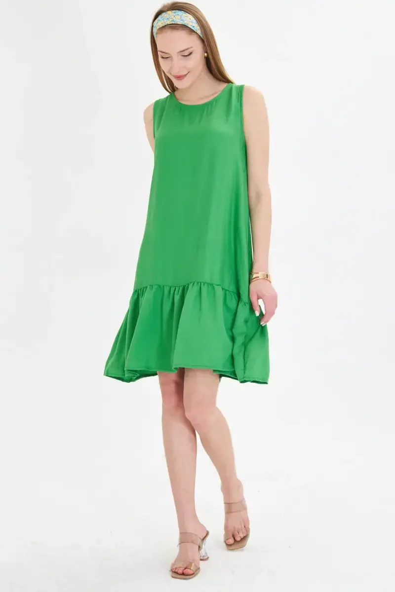 Травянисто-зеленое платье с оборками | Элегантное летнее платье без рукавов