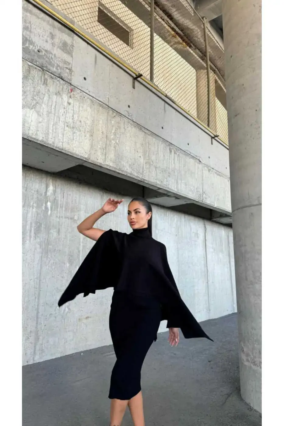 С наступлением холодов трикотажные платья становятся неотъемлемой частью нашего гардероба, сочетая в себе комфорт и элегантность. Наша модель Женского Трикотажного Платья-Пончо с Высоким Воротником добавляет этому классическому элементу современное и уникальное прикосновение. Одной из наиболее характерных особенностей продукта является высокий воротник-стойка, который не только обеспечивает дополнительный комфорт, согревая область шеи, но и придает изысканный и элегантный вид. Эта деталь воротника, облегающая шею, защищает вас от ветра на улице в холодные зимние дни, а также позволяет сохранить ваш стиль в помещении. Крой платья в стиле пончо обеспечивает комфорт и свободу движений. Благодаря своей свободной и струящейся структуре, эта модель не облегает фигуру, адаптируется к любому типу телосложения и гарантирует, что вы будете чувствовать себя комфортно в течение всего дня. Свободная и современная атмосфера, которую придает крой пончо, делает платье идеальным для повседневного ношения. Мягчайшая трикотажная ткань нежно касается кожи и благодаря своей особой структуре, не подверженной пиллингу (образованию катышков), сохраняет качество первого дня даже при длительном использовании. Текстура трикотажа, связанного из качественных нитей, также обеспечивает отличную теплоизоляцию, согревая вас. Это платье не только согревает, но и является очень легким в сочетании элементом гардероба. Вы можете создавать различные стили, дополняя его леггинсами и высокими сапогами, узкими брюками или плотными колготками. Надев поверх стильное пальто или куртку, вы можете стать самой стильной женщиной зимних месяцев. Желаете ли вы добиться комфортной элегантности в офисе, идете ли на кофе с друзьями на выходных или на ужин, это трикотажное платье обладает потенциалом адаптироваться к любой обстановке. Небольшие разрезы по бокам платья (если имеются) обеспечивают комфорт при ходьбе, добавляя современный штрих к дизайну и позволяя двигаться свободно. Это трикотажное платье-пончо, будучи одним предметом, избавляет от забот по подбору комплекта и предлагает эффектный вид даже с минимальными аксессуарами. Вы можете создать другой силуэт, добавив тонкий пояс на талию, и придать более женственный образ. Это платье станет спасительной вещью в вашем зимнем гардеробе, выделяясь как стильными, так и функциональными особенностями. Благодаря возможности машинной стирки на деликатном режиме (следует проверить по этикетке), уход за ним также очень практичен. Женское Трикотажное Платье-Пончо с Высоким Воротником, благодаря своему вневременному дизайну и превосходному комфорту, является кандидатом на звание фаворита холодных сезонов. Это идеальный выбор для тех, кто не хочет жертвовать элегантностью даже в насыщенном темпе жизни современной женщины. Благодаря комфорту на весь день и привлекательному стилю, это платье позволит вам почувствовать себя особенной. С различными вариантами цветов (если имеются) вы можете выбрать наиболее подходящий вашему стилю и добавить в свою зимнюю коллекцию теплую и стильную вещь. С этим трикотажным платьем-пончо вы останетесь в тренде и защититесь от холода.