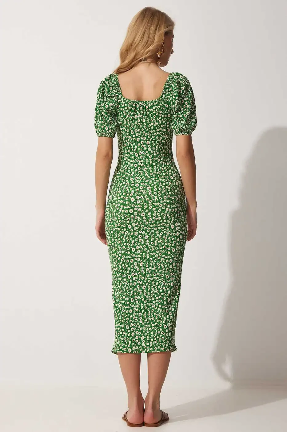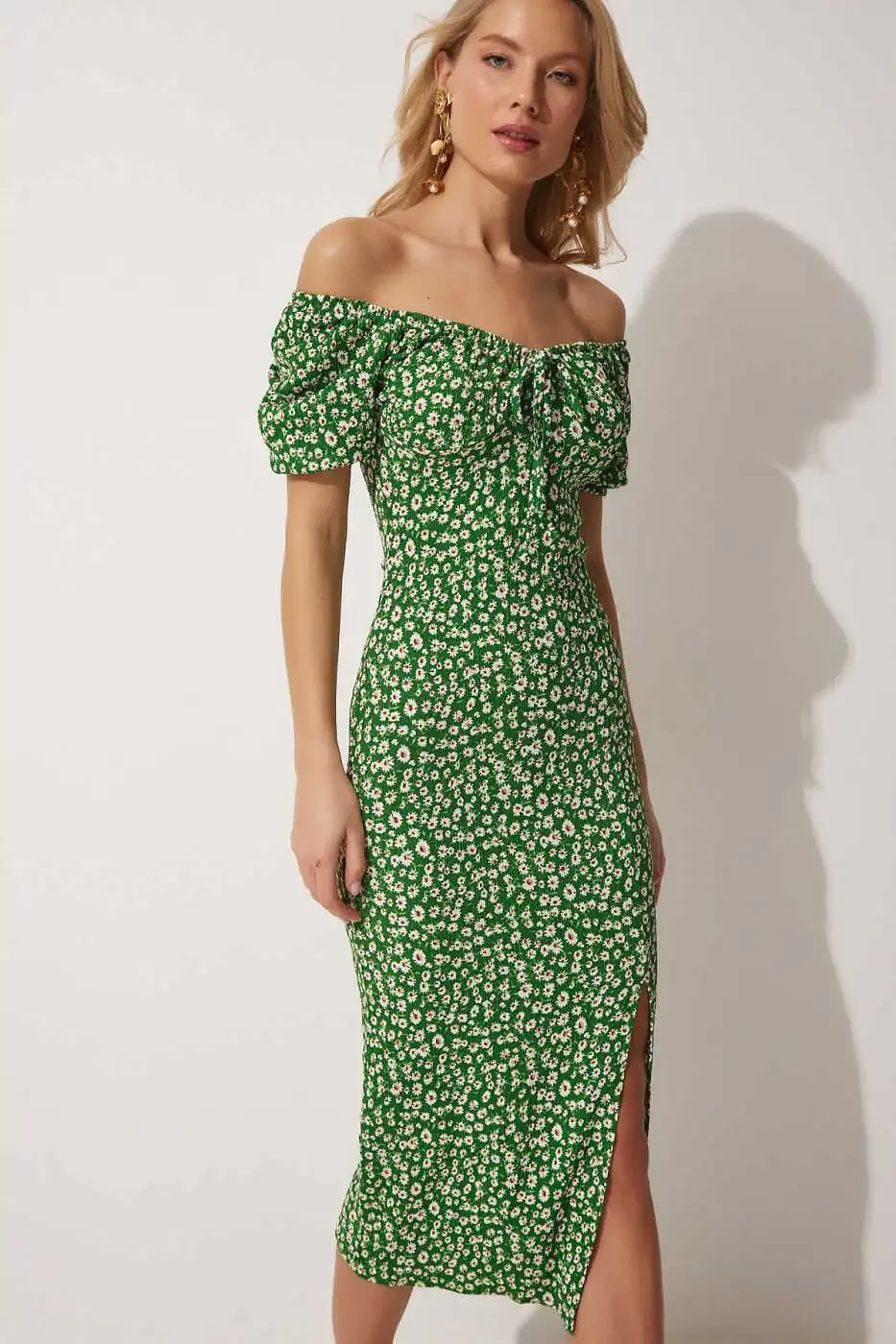 Если вы хотите чувствовать себя комфортно, не жертвуя своим стилем в жаркие летние дни, то женское зеленое вязаное летнее платье с вырезом кармен и разрезом FF00113 как раз для вас! Это платье, создающее женственный образ благодаря своему ярко-зеленому цвету и цветочному рисунку, также предлагает современный и модный вид. Деталь рукава-фонарика и разрез придают платью динамичность, а длина миди обеспечивает элегантность, подходящую для любой обстановки. Вязаная ткань, изготовленная из смеси 95% хлопка и 5% эластана, благодаря своей дышащей структуре обеспечивает комфортное использование в течение всего дня. Обтягивающий, но не стесняющий силуэт shift подходит для любого типа телосложения, а вырез кармен изящно открывает ваши плечи. Это платье, которое вы можете с легкостью носить как в повседневной жизни, так и в особых случаях, станет одним из незаменимых предметов вашего гардероба. Вы можете с комфортом носить его на встречах с друзьями летними вечерами, на выходных прогулках или на романтическом ужине. Вы можете создавать разные стили, сочетая его с простыми сандалиями или туфлями на каблуке. Это платье, которое само по себе является привлекательным предметом благодаря своему яркому цвету и цветочному рисунку, вы можете подчеркнуть свою элегантность, дополнив его простыми аксессуарами. Это платье, которое при стирке в соответствии с инструкциями по уходу надолго сохранит свой первоначальный вид, будет сопровождать вас долгие годы благодаря качественной ткани и элегантному дизайну. Не пропустите этот товар, предлагаемый с гарантией Trendyol!