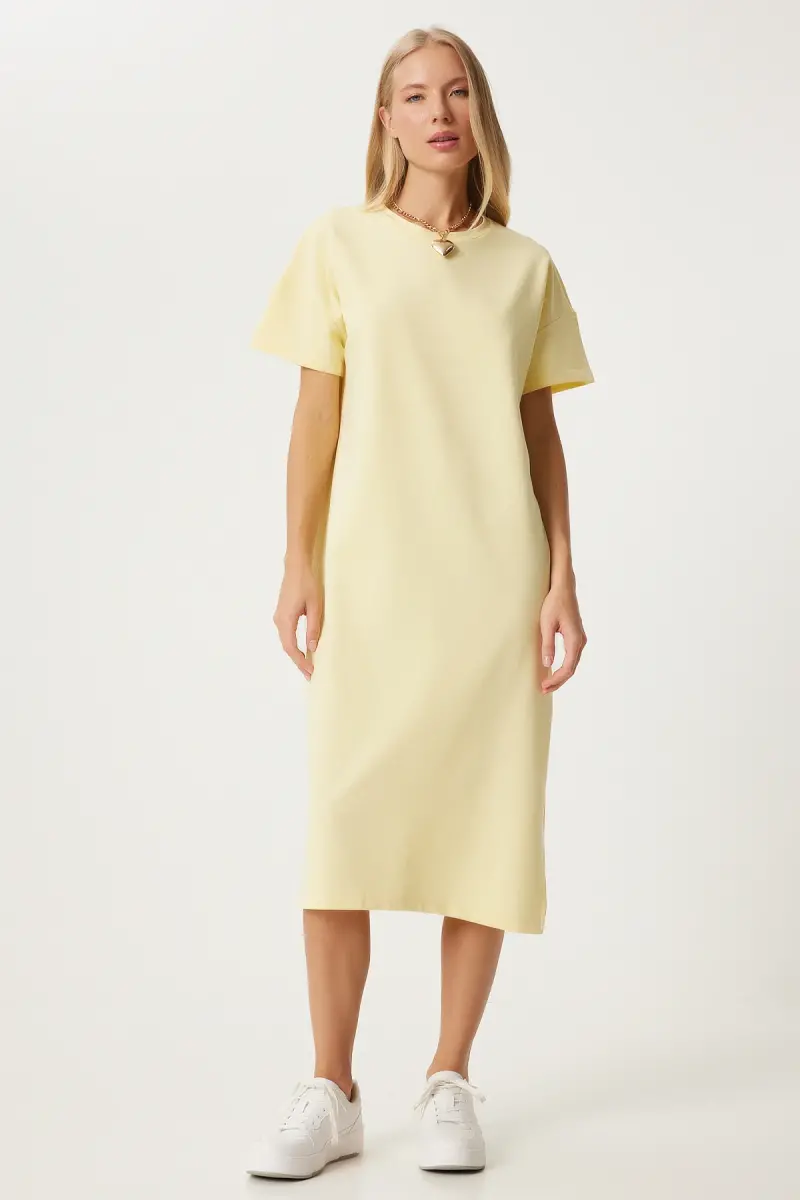 Предназначенное для женщин, которые хотят быть одновременно стильными и чувствовать себя комфортно в жаркие летние дни, женское желтое хлопковое летнее повседневное трикотажное платье UB00080-Sarı станет незаменимой вещью в вашем гардеробе. Это платье обеспечивает комфорт в течение всего дня благодаря своей легкой и дышащей хлопковой ткани, а также помогает вам отразить свою энергию своим ярким желтым цветом. Это платье, которое можно выбрать как для повседневной деятельности, так и для особых встреч, предлагает стиль и комфорт в одном лице.**Описание товара**Женское желтое хлопковое летнее повседневное трикотажное платье UB00080-Sarı — идеальный выбор для женщин, которые хотят оставаться прохладными и стильными в жаркие летние дни. Это платье, изготовленное из высококачественной хлопковой трикотажной ткани, обеспечивает мягкое прикосновение к вашей коже и комфорт в течение всего дня. Яркий желтый цвет платья отражает энергию лета, а простой и элегантный дизайн подходит для любой обстановки. Вы можете носить его с удобными сандалиями днем для повседневных занятий, а вечером дополнить его элегантными туфлями на каблуке и аксессуарами для особых случаев.Крой платья имеет облегающий, но не ограничивающий свободу движений силуэт. Это позволяет вам выглядеть стильно и чувствовать себя комфортно в течение всего дня. Дышащая хлопковая ткань предотвращает потоотделение в жаркую погоду и позволяет вашей коже дышать. Кроме того, легкость глажки ткани обеспечивает простоту использования.Женское желтое хлопковое летнее повседневное трикотажное платье UB00080-Sarı не только стильное и удобное, но и долговечное. Благодаря качественным швам и прочной ткани вы можете использовать его как новое в течение длительного времени. Добавив это платье в свой гардероб, у вас всегда будет стильный и удобный вариант летом. Независимо от того, гуляете ли вы по городу или загораете в отпуске, это платье всегда будет сопровождать вас.Универсальный дизайн платья позволяет легко сочетать его с различными аксессуарами. Вы можете носить его с шляпой и солнцезащитными очками на пляже или с шарфом и курткой прохладными вечерами. Короче говоря, женское желтое хлопковое летнее повседневное трикотажное платье UB00080-Sarı — это вневременная и универсальная вещь, которая должна быть в гардеробе каждой женщины. Наслаждайтесь летом, оставаясь стильными и комфортными в этом платье.**Характеристики продукта*** Высококачественная хлопковая трикотажная ткань* Яркий желтый цвет* Удобная и дышащая структура* Дизайн подходит для повседневного использования* Облегающий крой* Не ограничивает свободу движений* Легко гладить* Долговечный и прочный* Легко сочетается с различными аксессуарами* Элегантный и утонченный внешний вид* Предотвращает потоотделение в жаркую погоду* Ткань, приятная для кожи* Легкий и удобный* Подходит для любой обстановки**Дополнительная информация**Размер модели S/36. Состав продукта 100% хлопок. Рекомендуется стирать в деликатном режиме. Цвет продукта может незначительно отличаться в зависимости от настроек вашего экрана.