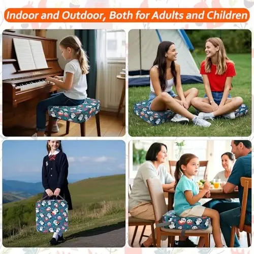Super Comfortable Toddler Cushion: This toddler cushion made of high-density soft sponge, which increases comfort, not easy to out of shape, fully enough to support an adult, very durable Safety & Non-Slip: This cushion equipped with double straps, can be attached under and behind the chair to ensure stability and prevent slipping when sitting. Adjustable Belt (20''-30'') Detachable & Washable: This cushion adopts a zipper design, independent cover design, easy to disassemble and clean, can be machine-washed Lightweight & Portable: The cushion with compact design, you can take it with you baby to travel, theater, movie theater, bus, restaurant and more Perfect Size: 13.78 x13.78 x 3.94 inch. Perfect sizes fit most occasions, and help children sit at the table to enjoy the food with family comfortably