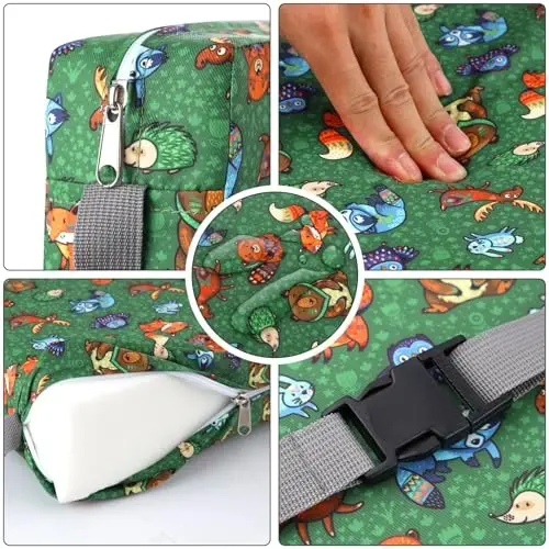 Make your child's mealtimes more enjoyable and safe with the Zicac Portable Toddler Booster Seat! This portable booster seat is designed to help your child reach the family table at every meal, without compromising on comfort and safety. Made of high-density soft sponge, this seat is durable enough to carry an adult comfortably and is suitable for long-term use. It retains its shape and is resistant to abrasion and wrinkles, so it always looks like new.The Zicac Booster Seat is equipped with a double strap system to maximize your child's safety. These straps ensure that the booster seat is securely attached to the chair and prevents slipping while sitting. Adjustable straps (20''-30'') fit most dining chairs, so you can use it safely on any chair at home or away. You no longer have to worry about your child slipping or falling out of their chair.Designed with practicality and hygiene in mind, this booster seat has a removable and washable cover. Thanks to the zippered design, you can easily remove the cover and machine wash it. This feature allows you to easily clean up stains and dirt that may occur after meals, so your child can always eat on a clean and hygienic surface. The independent cover design makes cleaning even easier.The Zicac Portable Toddler Booster Seat also stands out with its lightweight and portable design. Thanks to its compact design, you can easily carry it with you on travels, in the theater, cinema, bus, restaurant and many more places. You no longer have to worry about your child's seating arrangement when eating out or traveling. This portable booster seat offers a comfortable and safe solution anytime, anywhere.With perfect dimensions, the Zicac Booster Seat (12.6 x 12.6 x 3.1 inches) fits most dining chairs perfectly. This way, your child can enjoy the meal with his family while sitting at the table. It is an ideal choice to make your child's meal times more social and enjoyable. The Animal Green design also attracts children's attention and makes meal times more fun. With Zicac, your child's comfort and safety always come first!