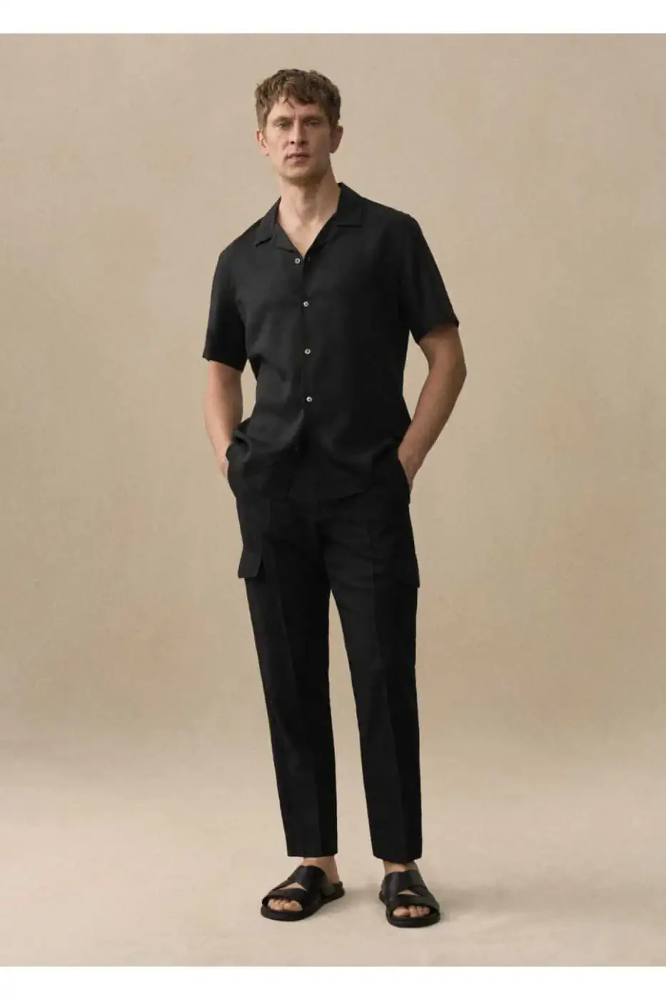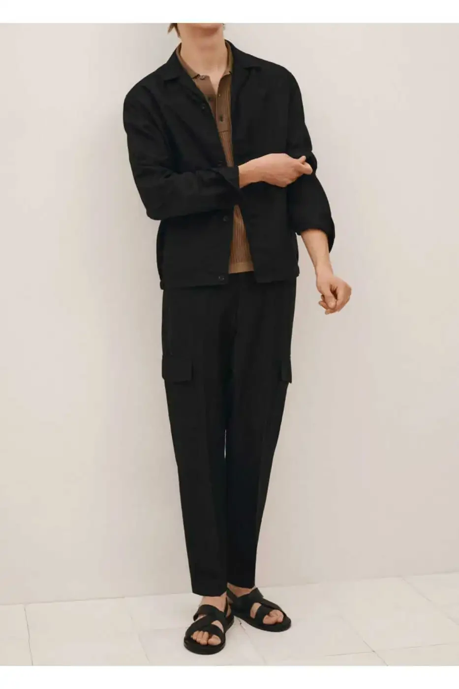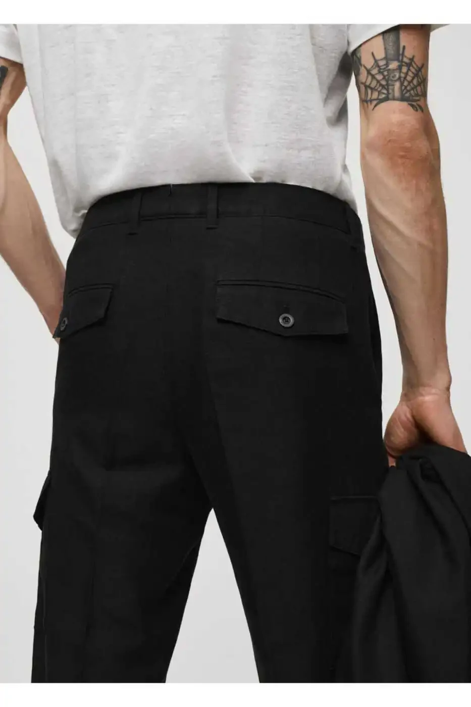 Moda uslubidagi zig‘ir aralash kargo shim sizning har qanday ko‘rinishingizga o‘ziga xos nafislik qo‘shadi. Tor kesim va zig‘ir aralash matolari qulaylik va uslublilikni birlashtiradi. Kamar uchun ilmoqchalar, fermuar va tugma yopqichlari foydalanish qulayligi va estetikani birlashtiradi. Ikkita oldingi cho‘ntak, yon tomonlarida ikkita yama cho‘ntak va orqa tomonida tugmali ikkita yama cho‘ntak barcha buyumlaringiz uchun yetarli saqlash joyini taʼminlaydi. 75,4 sm uzunlikdagi ichki cho‘ntak va 103 sm uzunlikdagi yon tikuv baland bo‘yli odamlar uchun juda mos keladi. Shimning old va orqa tomonidagi dazmollangan chiziqlar uning ko‘rinishini to‘ldiradi. 70% zig‘ir va 30% zig‘ir aralashmasidan ishlangan matolari bardoshli va havodorlikni taʼminlaydi. Astar cho‘ntagi 65% poliester va 35% paxtadan qilingan. Ularga g‘amxo‘rlik qilish oson, ularni 30°C da mashinada yuvish mumkin. Oqartirgichdan foydalanmang, 110°C gacha dazmollang, quruq tozalash qilmang va quritish mashinasida quritish mumkin emas.