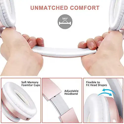bluetooth headphones, over ear headphones, wireless headphones, wired headphones, stereo headphones, micro sd, tf card, fm radio, cell phone, computer, rose gold, zihnic