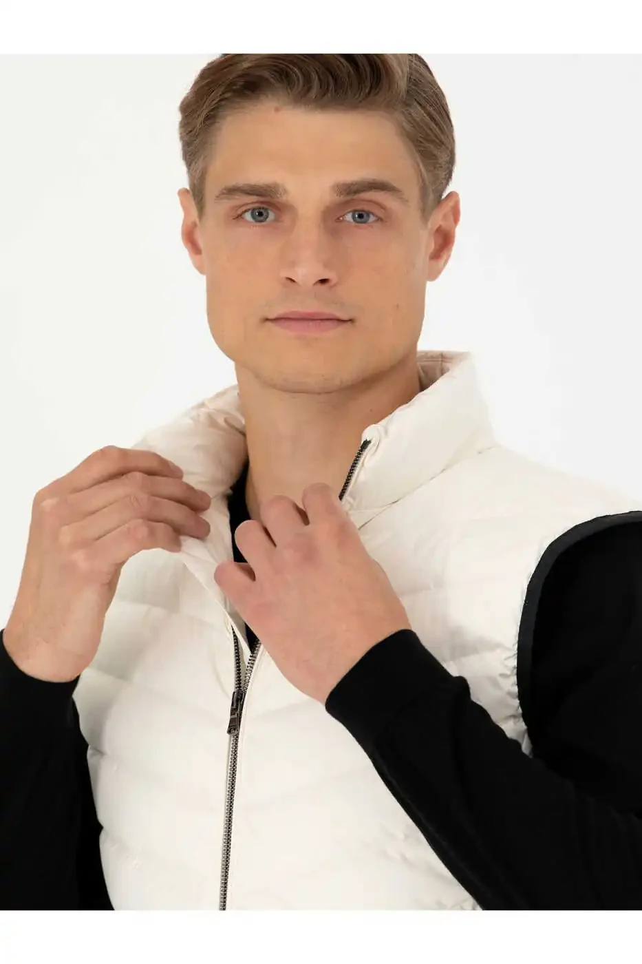 Идеальный выбор для того, чтобы выглядеть стильно и тепло в холодные зимние дни, Экру Пуховик Жилетка сочетает в себе комфорт и стиль. Легкая и мягкая по структуре, она идеально подходит для повседневной носки, а также обладает водонепроницаемыми свойствами, защищая вас от дождя.