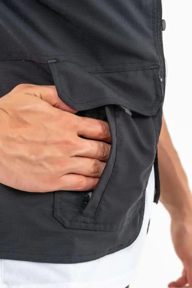- Прочные молнии и пряжки обеспечивают долговечность жилета при длительном использовании.