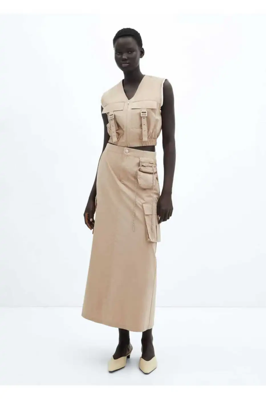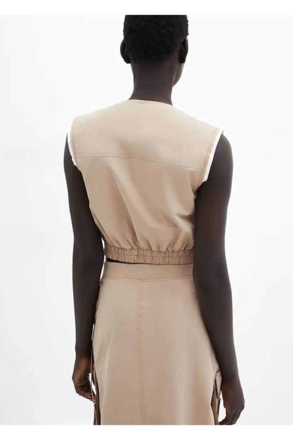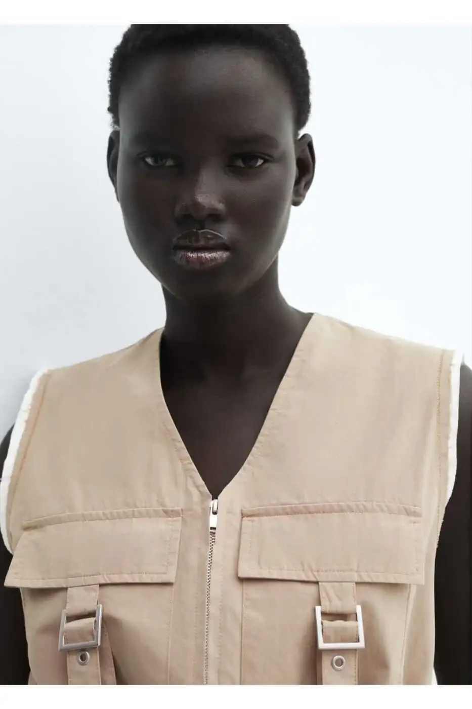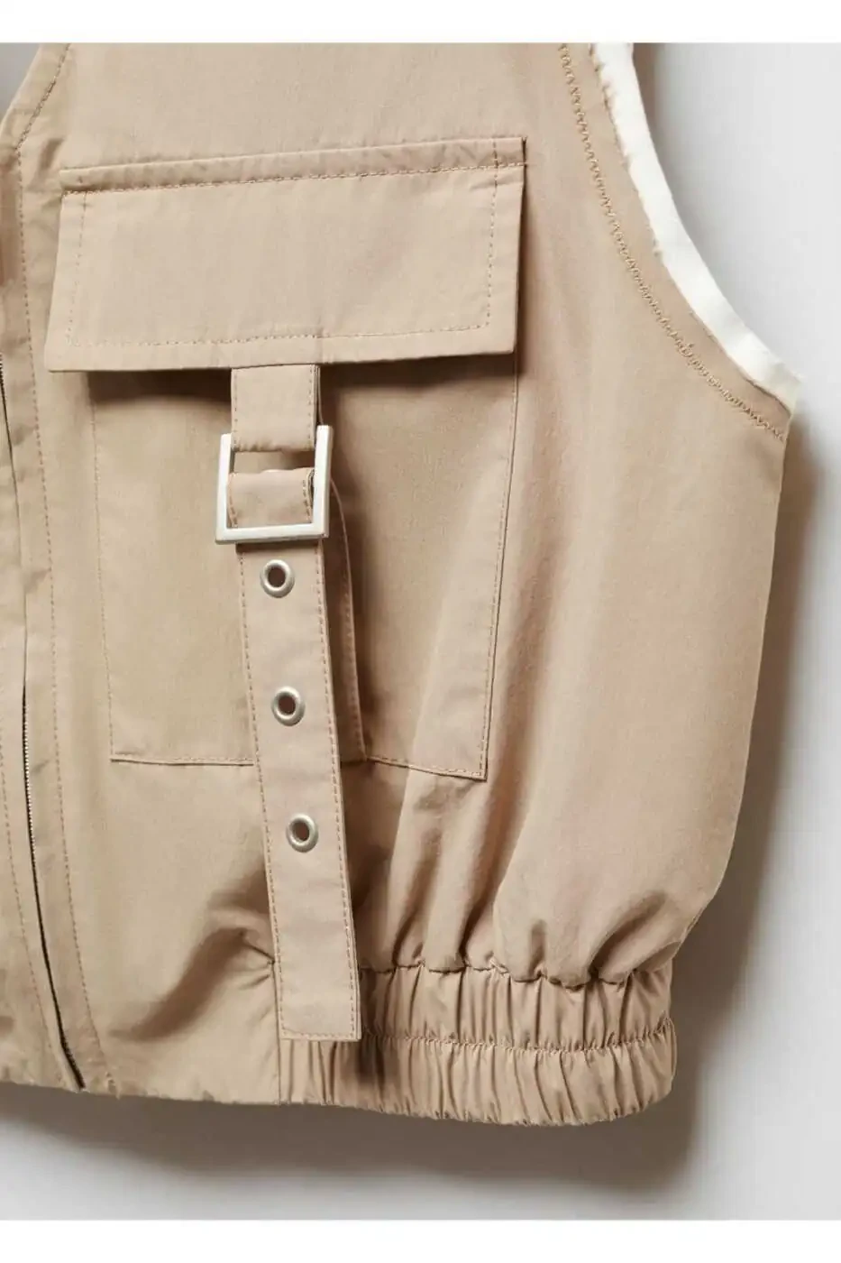 Этот грузовой жилет с карманами изготовлен из удобного и стильного материала, содержащего 72% хлопка и 28% полиамида. Его укороченная длина, V-образный вырез и безрукавный дизайн создают современный и изысканный образ. Два накладных кармана на передней части обеспечивают как функциональность, так и декор. Декоративные пряжки и контрастная эластичная отделка усиливают его эстетическую привлекательность. Застегивается спереди на молнию, а эластичные манжеты обеспечивают удобную посадку. Подкладка изготовлена из 85% полиэстера и 15% хлопка.