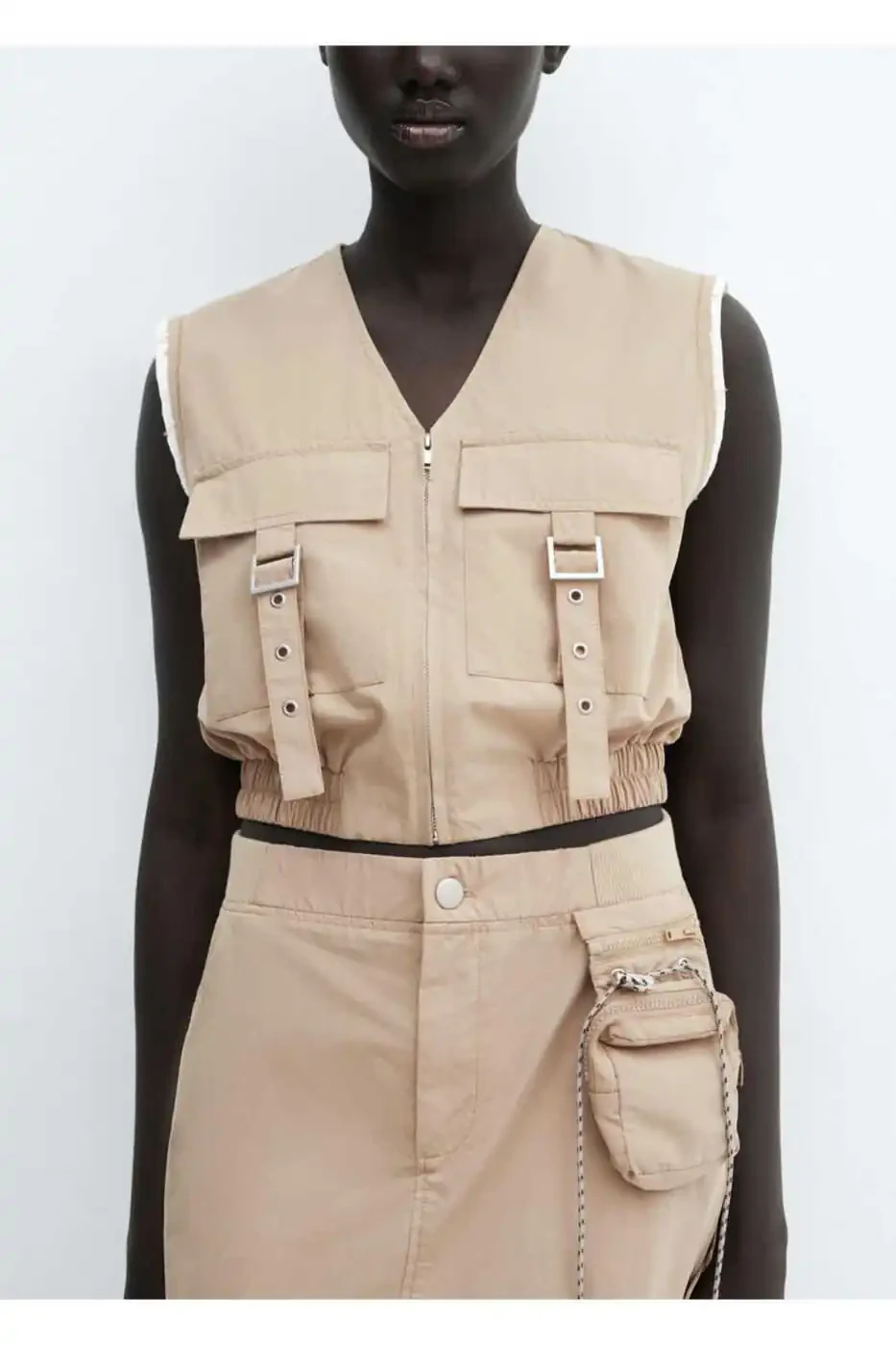 Грузовой жилет с карманами, стильный жилет, удобный жилет, современный жилет, жилет с V-образным вырезом, жилет на молнии, женский жилет, хлопковый жилет
