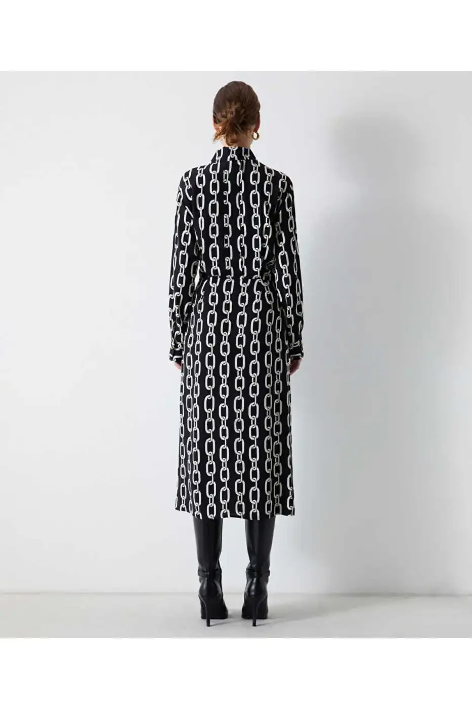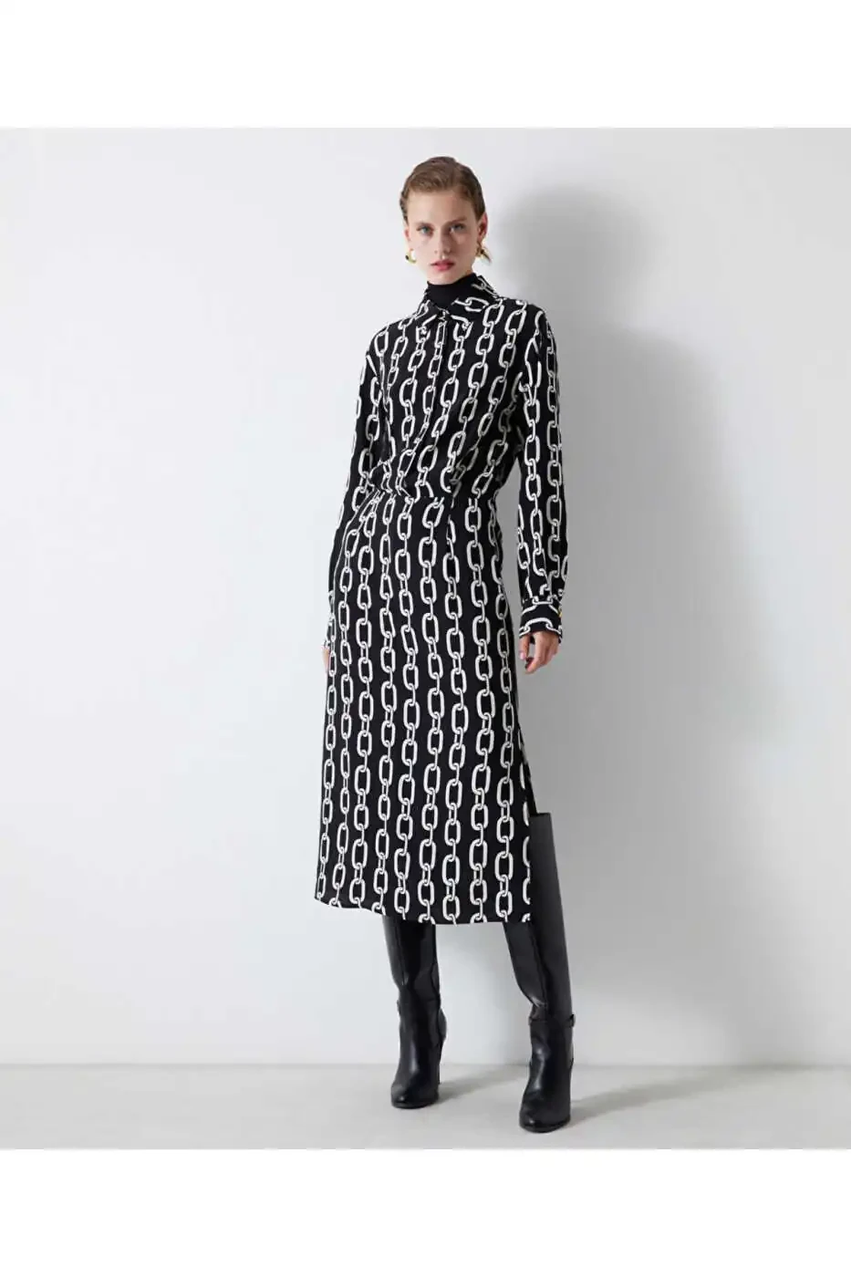 Созданное для тех, кто ищет вневременную элегантность и утонченный образ, платье с узором цепи станет незаменимым элементом вашего гардероба. Это платье, где элегантный узор цепи демонстрируется в ослепительном стиле, позволит вам чувствовать себя особенной и уверенной в себе в любой обстановке.