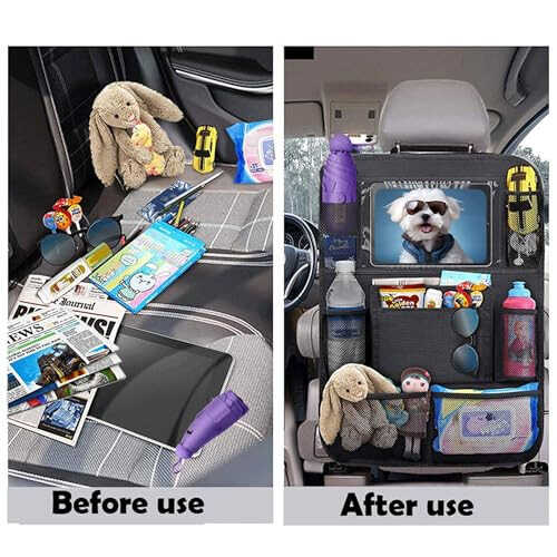 fabric Imported -【Car Organizers and Storage】The backseat car organizer comes with 9 different-sized storage compartments including a clear tablet holder, pockets for bottles, and large mesh pockets for other essentials. you can conveniently store snacks, children's toys, water bottles, drinks and other road trip essentials kids. -【Kick Mats Back Seat Protector】Our back of seat protector for kids feet is meticulously designed to cover the entire seat, perfectly protects your seat.Perfect for people with children and pets! -【Extremely durable】Our backseat organizer for kids is constructed from secure, thick, and high-quality materials.It is waterproof and dirt-resistant. Enjoy their support plastic strong straps, and reinforced buckles. -【Adjustable & Easy to Install】The car kick mat with adjustable straps is appropriate for all types of cars like jeep, truck, van, SUV.