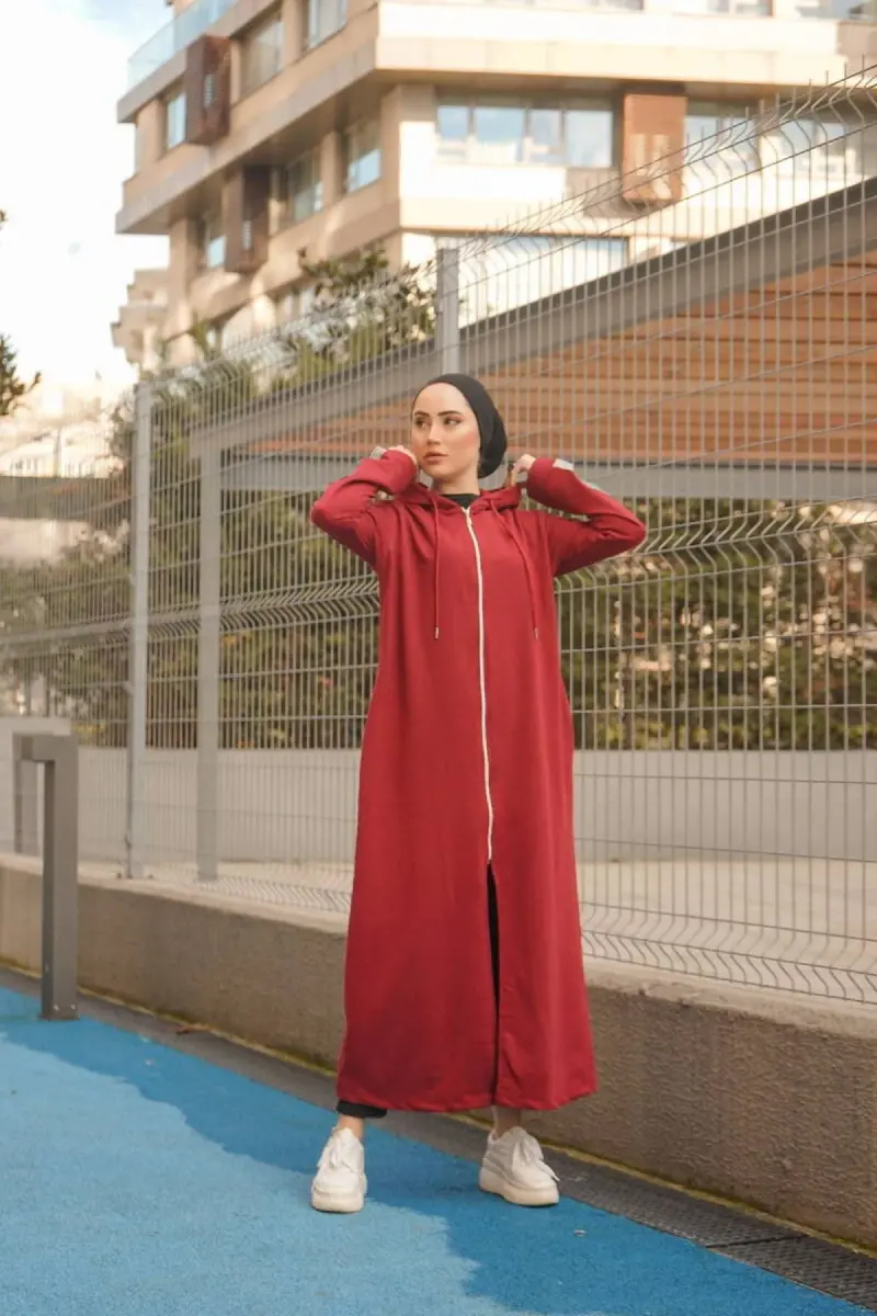 Ferace, modest fashion, sports, hooded, zippered, burgundy, comfortable, daily, stylish, modern