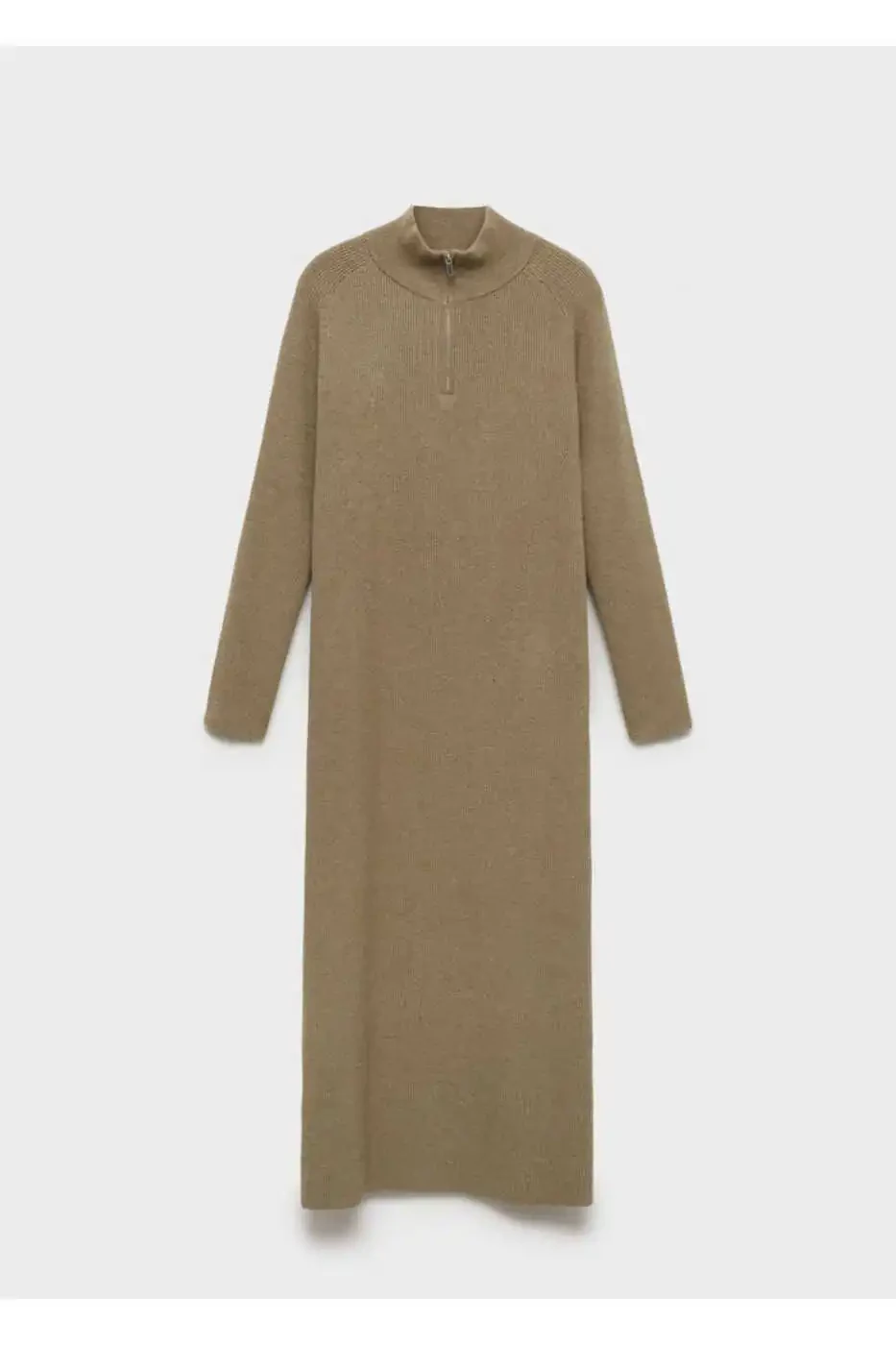 The elegant and stylish Zippered Knotted Dress will become an indispensable piece in your wardrobe. Its fitted model that perfectly hugs your body and its fine-knit fabric offer a modern look. Its midi length and zippered Perkins collar provide both a stylish and comfortable experience.The dress is made from a high-quality fabric blend of 44% acrylic, 26% polyester, 25% polyamide, and 5% wool. Its elastic woven fabric provides freedom of movement, while its fine knit elegantly emphasizes your body lines. Its long sleeves and 122 cm back length make it suitable for all body types.This dress is the perfect choice for any occasion. You can combine it with sneakers or boots for everyday use, while you can achieve a stylish look with high heels for special invitations. Its midi length can be easily worn in both formal and casual settings.Thanks to its high-quality fabric and durable design, the Zippered Knotted Dress will be the favorite of your wardrobe for many years. You can extend the life of your dress by following the care instructions, such as hand washing at a maximum of 30°C, not using bleach, ironing at a maximum of 110°C, and not dry cleaning.Don't miss out on this stylish and comfortable dress and add a unique touch to your wardrobe.