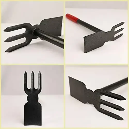 Двуглавый садовый инструмент: Этот садовый инструмент сочетает в себе мотыгу и тяпку, что делает его идеальным для рыхления и обработки почвы. Прочный: Эта садовая мотыга разработана так, чтобы быть устойчивой к ржавчине и рассчитана на долгие годы службы. Эргономичный: Удобная нескользящая ручка облегчает использование этого садового инструмента и снижает утомляемость рук. Компактный: Небольшой размер делает этот садовый инструмент идеальным для использования в небольших садах или контейнерах. Универсальный: Этот садовый инструмент можно использовать для различных садовых работ, таких как рыхление, обработка почвы и удаление сорняков.