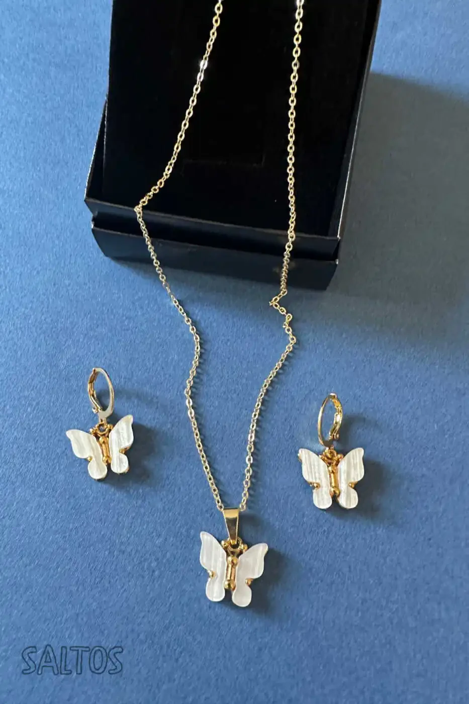 Элегантный и стильный подарок: набор золотых колье и сережек с белыми бабочками