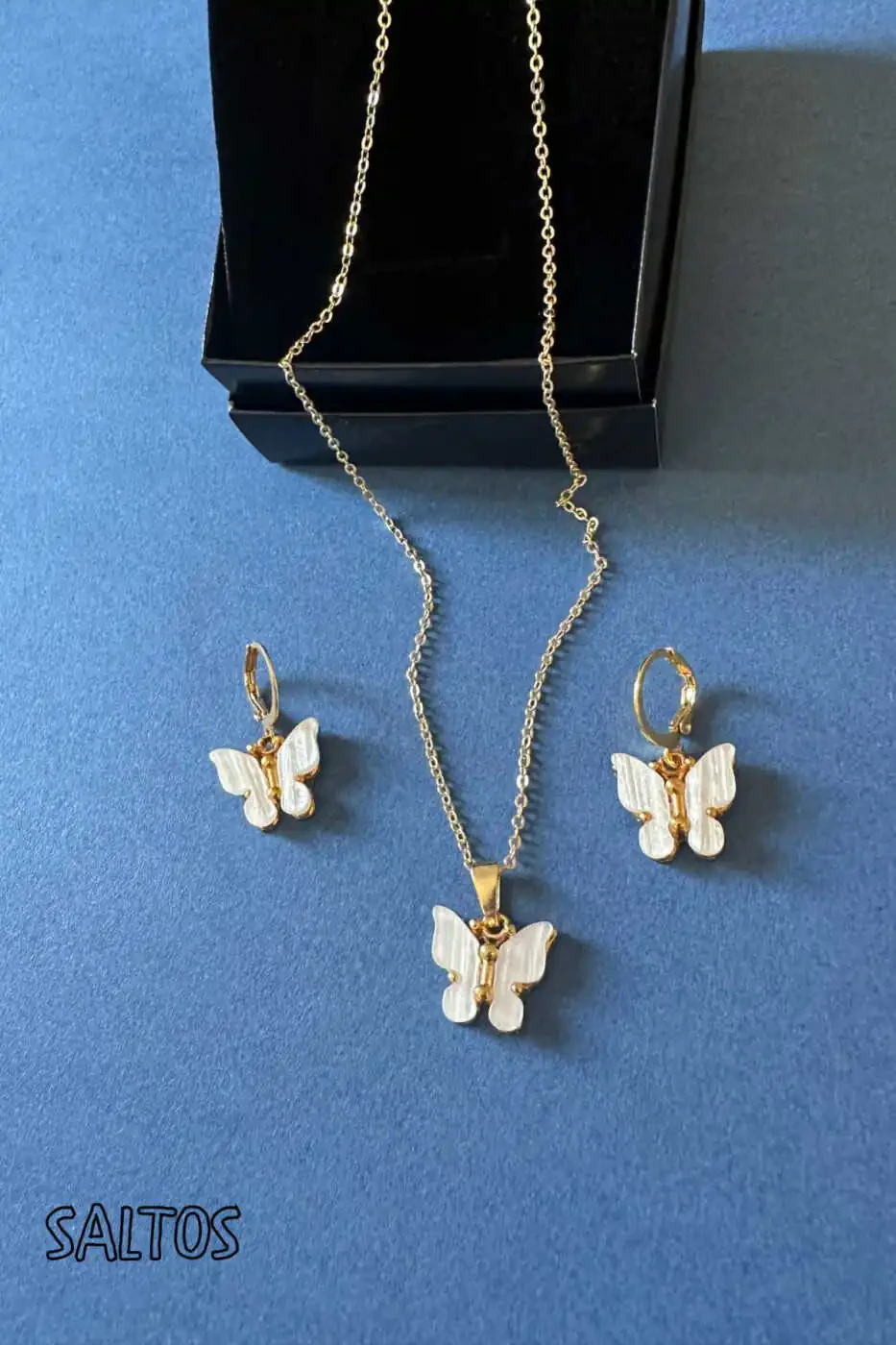 Золотой набор колье и сережек с белыми бабочками - Элегантный и стильный подарок