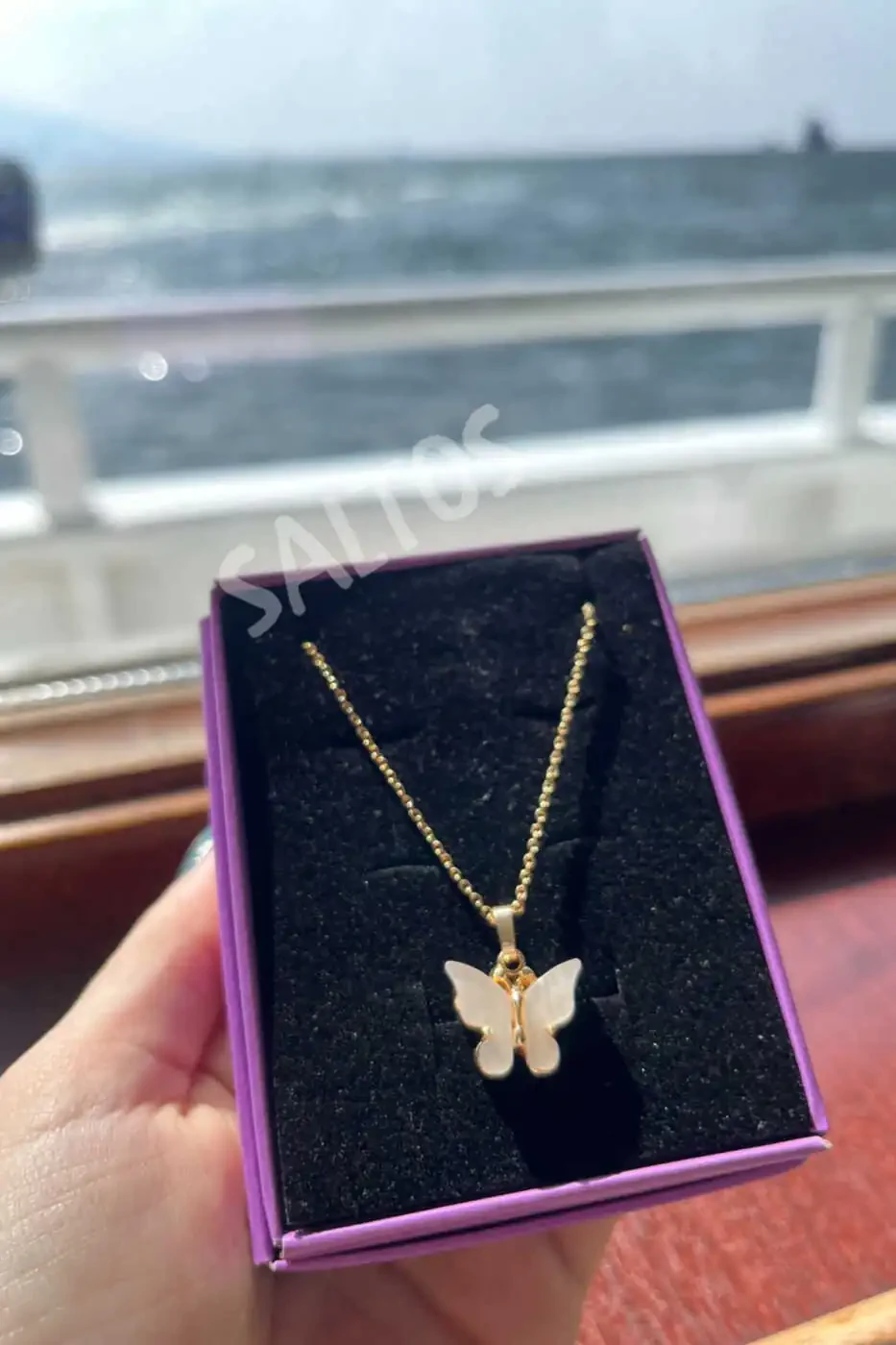 Этот элегантный набор золотых колье и сережек, украшенный белыми бабочками, - идеальный вариант подарка, чтобы порадовать ваших близких. Идеально подходит как для повседневной носки, так и для создания стильного образа по особым случаям. Этот набор привлекает внимание своим блеском и тонкой работой, он понравится каждой женщине.