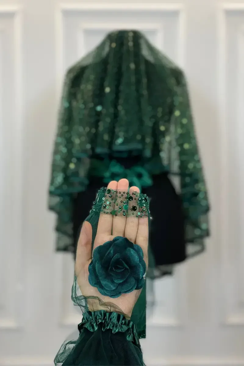Zumrad yashil rangdagi haqiqiy Vip kelinlik duvagi to'plami sizning orzuingizdagi xina kechasi va to'yingiz uchun mo'ljallangan, ko'zni qamashtiruvchi tanlovdir. Ushbu ajoyib to'plam ZEYMERADE tomonidan ehtiyotkorlik bilan tayyorlangan bo'lib, maxsus kunlaringizda sizni yulduz kabi porlaydi. To'liq payet, boncuk va marvarid detallari bilan bezatilgan, jozibali dizayni bilan ajralib turadigan ushbu to'plam, haqiqiy va zamonaviy chiziqlarni birlashtirib, noyob ko'rinishni taqdim etadi. Xina duvagi, xina yopinchig'i va kelinlik duvagi to'plami sifatida ishlatishingiz mumkin bo'lgan ushbu mahsulot, xina kechasi, to'y, nikoh, unashtiruv, sovchilik, bachadon bayrami kabi maxsus lahzalaringizda nafisligingiz va uslubingizni namoyon qiladi. Sep tayyorlash uchun ajralmas bo'lgan ushbu to'plam, sandig'ingizning eng qimmatli qismlaridan biri bo'lishga nomzod. Kuyov, kelin, kuyovjo'ra, o'rtoq va sunnat buyumlari aksessuarlari uchun do'konimizga tashrif buyurib, boshqa maxsus dizaynlarimizni ham ko'rishingiz mumkin. Yorqin porlayotgan ushbu maxsus to'plam, fotosuratlaringizda va maxsus xotiralaringizda unutilmas iz qoldiradi. Zumrad yashilining olijanobligini o'zida mujassam etgan ushbu duvak to'plami, maxsus dizayndagi qo'lqoplar va qo'l gullari bilan to'liq uyg'unlikda taqdim etiladi. O'zingizni maxsus his qilish va unutilmas tajribaga ega bo'lish uchun ushbu noyob to'plamni tanlang. Ushbu to'plam bilan siz nafaqat duvak, balki san'at asarini ham olib yurasiz. Har bir detalida ehtiyotkorlik va aniqlik mujassam bo'lgan ushbu dizayn, an'anaviy naqshlarni zamonaviy talqin bilan birlashtirib, sizga o'ziga xos va nafis ko'rinish beradi. Xina kechangizda va to'yingizda barcha ko'zlar sizda bo'lishini ta'minlaydigan ushbu maxsus to'plam, yaqinlaringiz bilan birga o'tkazadigan baxtli lahzalaringizni yanada mazmunli qiladi. Zumrad yashil rangdagi haqiqiy Vip kelinlik duvagi to'plami bilan unutilmas boshlanishga qadam qo'ying.