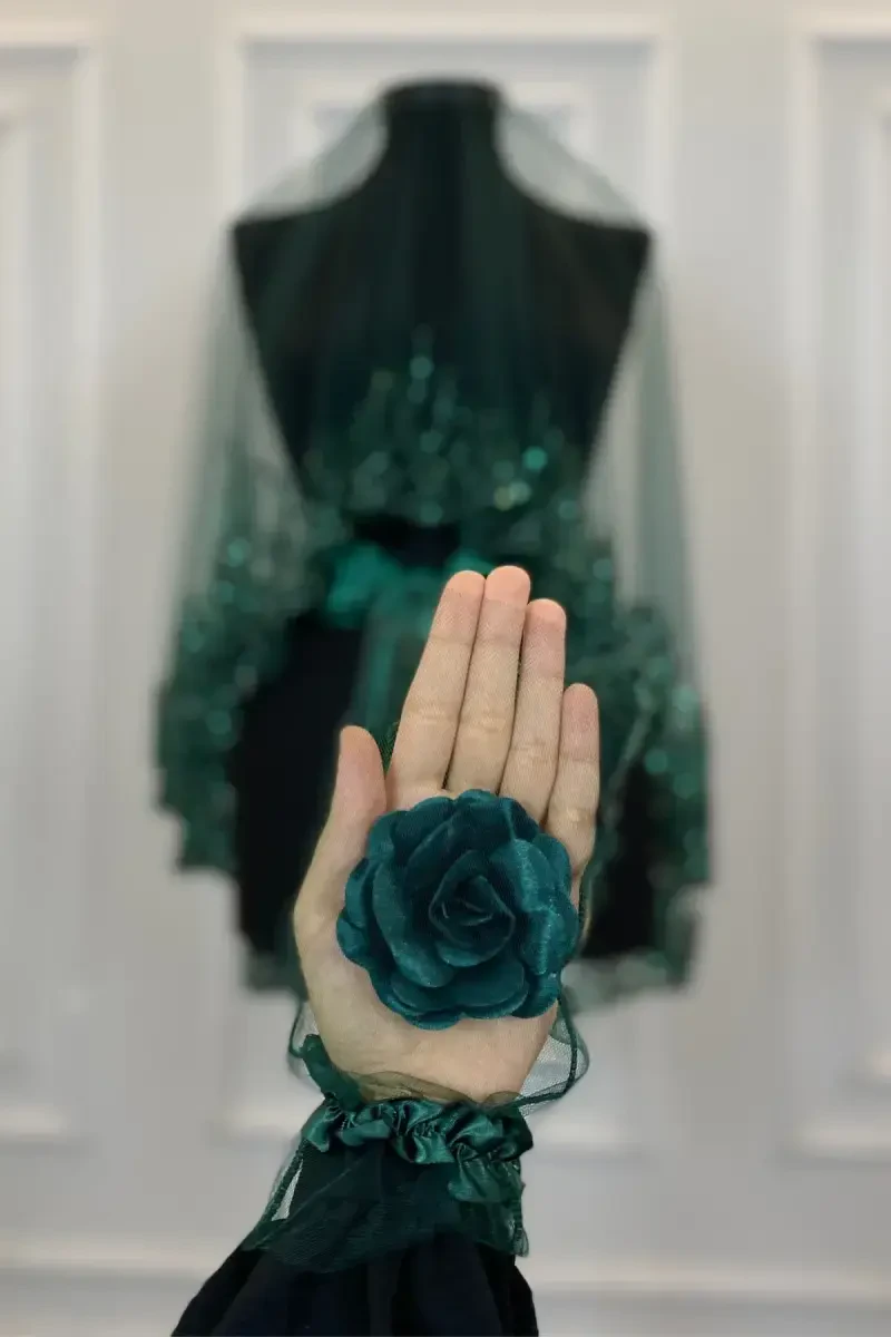 Zumrad yashil olov naqshli kelinlik ro'mol to'plami sizning maxsus kunlaringizda nafisligingiz va uslubingizni to'ldiradigan ajoyib tanlovdir. Zeymerade tomonidan ehtiyotkorlik bilan ishlab chiqilgan ushbu 6 qismli to'plam xina kechasidan to to'ygacha, unashtiruvdan to bo'ydoqlar kechasigacha bo'lgan barcha maxsus lahzalaringizda sizga hamroh bo'ladi. Olov naqshli dizayni, tangachali munchoqlar va suv toshli detallari bilan ko'zni qamashtiruvchi ko'rinishni taqdim etadi. Ushbu to'plam sizning kelinlik libosingizga mukammal mos keladi va sizni kechaning eng yorqin yulduzi qiladi. Har bir qismi ehtiyotkorlik bilan tanlangan materiallardan tayyorlangan bo'lib, uzoq muddatli foydalanish imkoniyatini beradi. O'zingizni maxsus his qilish va unutilmas xotiralar to'plash uchun ushbu noyob to'plamni qo'ldan boy bermang. Do'konimizga tashrif buyurib, xina ro'moli, kelinlik ro'mol to'plami, xina o'rtusi va boshqa maxsus kun aksessuarlarimiz bilan uyg'unlashtirib, orzuingizdagi ko'rinishga erishishingiz mumkin. To'yga tayyorgarlikning ajralmas qismi bo'ladigan ushbu to'plam, shuningdek, sepingiz uchun ham ajoyib boshlanish bo'ladi. Ushbu ajoyib to'plam bilan unutilmas xina kechasi va to'y tajribasini o'tkazing. Zumrad yashil rangi har qanday muhitga moslashib, sizni har doim oldinga olib chiqadi. Mahsulotimiz tez yetkazib berish afzalligi bilan eshigingizgacha yetib boradi. Shoshiling, zaxiralar bilan cheklangan ushbu imkoniyatni qo'ldan boy bermang! Zumrad yashil olov naqshli kelinlik ro'mol to'plami nafaqat aksessuar, balki xotiradir. Ushbu maxsus to'plam to'y fotosuratlaringizda va xotiralaringizda doimo o'z o'rnini saqlab qoladi. Kuyov, kelin dugonalari va o'rtoqlaringiz bilan birgalikda unutilmas bayram qiling. Ushbu to'plam nafaqat sizga, balki yaqinlaringizga ham unutilmas sovg'a bo'ladi. Ularga ushbu maxsus kunda qanchalik qadrlashingizni ko'rsatishning eng yaxshi usuli. Zumrad yashil olov naqshli kelinlik ro'mol to'plami bilan orzularingizni bezang va eng maxsus lahzalaringizni tojlang.