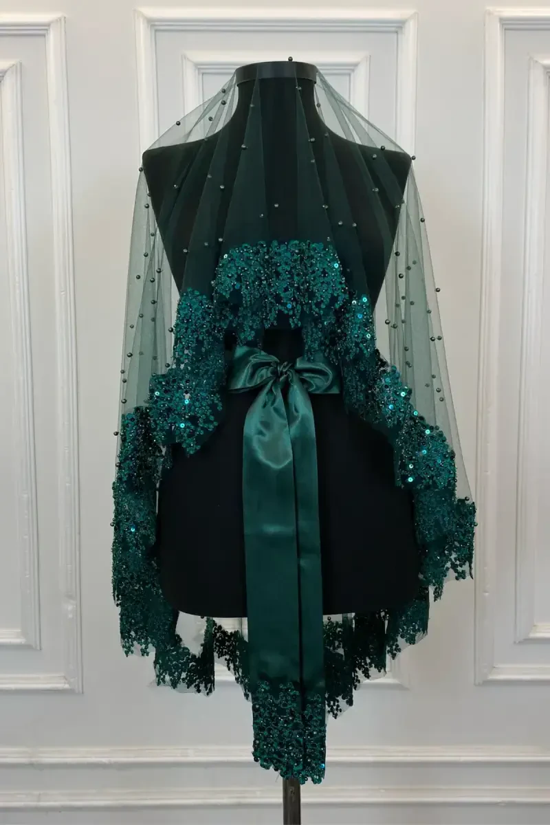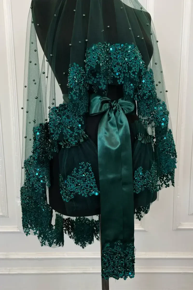 kelin duxob seti, xina duxobi, zumrad yashil, ромашka gipyurlari, boncukli, pulli, марварид detalli, 6 qism, to'y, xina kechasi