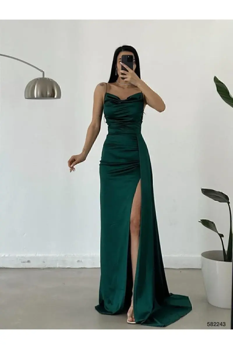 Bu ürün Mafcollection tarafından gönderilecektir.Kampanya fiyatından satılmak üzere 5 adetten az stok bulunmaktadır.Bir ürün, birden fazla satıcı tarafından satılabilir. Birden fazla satıcı tarafından satışa sunulan ürünlerin satıcıları ürün için belirledikleri fiyata, satıcı puanlarına, teslimat statülerine, ürünlerdeki promosyonlara, kargonun bedava olup olmamasına ve ürünlerin hızlı teslimat ile teslim edilip edilememesine, ürünlerin stok ve kategorileri bilgilerine göre sıralanmaktadır.Bu üründen en fazla 10 adet sipariş verilebilir. 10 adedin üzerindeki siparişleri Trendyol iptal etme hakkını saklı tutar. Belirlenen bu limit kurumsal siparişlerde geçerli olmayıp, kurumsal siparişler için farklı limitler belirlenebilmektedir.15 gün içinde ücretsiz iade. Detaylı bilgi için [page="return_conditions"]tıklayın .Zümrüt Saten Ön Pileli Abiye Elbise, düğün ve nikah gibi özel davetlerde şıklığınızla fark yaratmanızı sağlayacak zarif bir seçenektir. Fermuarlı kapama şekli sayesinde kolayca giyilip çıkartılabilirken, ince askılı tasarımı omuzlarınızı zarifçe sergiler. Maxi boyu ile hem rahat hareket etme özgürlüğü sunar hem de uzun boylu bir görünüm kazandırır. Slim kalıbı sayesinde vücut hatlarınıza mükemmel uyum sağlayarak feminen bir siluet çizer. Biyeli detayları ile sofistike bir dokunuş katarken, saten kumaşı parlaklığını korur ve lüks bir his sunar. Dokuma tipi ise dayanıklılığı artırırken, düz deseni sade ve zamansız bir tarz oluşturmanız için idealdir. %4 elastan içeriği esneklik sağlarken %96 polyester ise dayanıklılığı destekler. Type 1 yıkama talimatlarına uygun şekilde bakımı kolaydırböylece uzun süre ilk günkü gibi kalır. Balık silueti sayesinde modern ve akıcı bir form verirken, düz ürün tipiyle her tür aksesuarla kolayca kombinlenebilir. Basic koleksiyonun parçası olan bu abiye elbise, zümrüt rengiyle dikkat çekici detaylara sahiptir. Askılı kol boyu ile yaz aylarında serinlik sunarken, degaje yakası dekolte bölgenizi zarifçe vurgular. Saten materyali ise lüksünü her adımda hissettirerek unutulmaz anlara imza atmanız için mükemmel bir seçimdir.