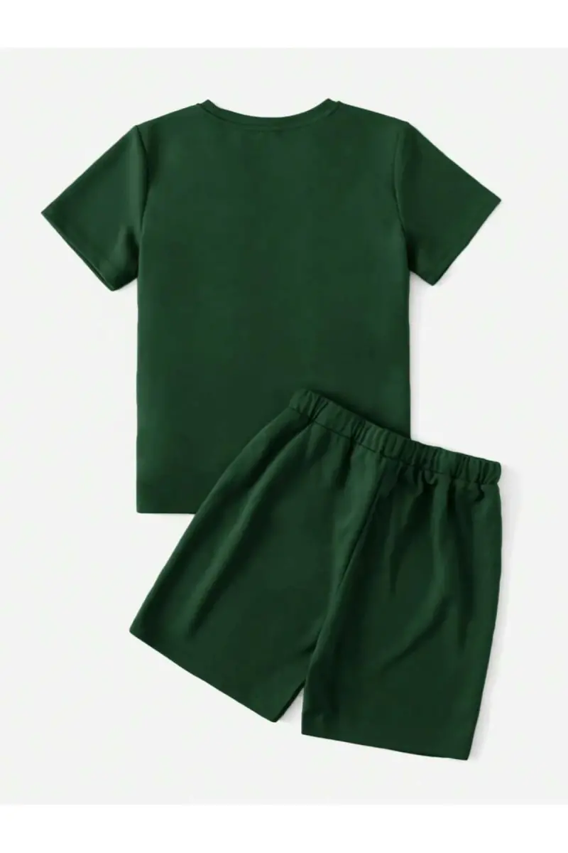 zumrut yeşili çocuk nasa baskılı alt ust şortlu takım-zumrut yeşili