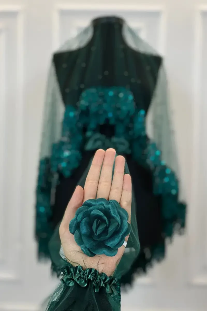 Emerald Green Vip Bridal Veil Set, Daisy Guipure Beaded Sequined Pearl Detailed Henna Veil Set is a carefully designed 6-piece set that will give you a completely different atmosphere on your special days. This set, which carries the nobility of emerald green, will accompany you in every moment from your henna night to your wedding. This veil set, enriched with daisy guipure embroidery, bead and sequin details, and pearl touches, offers a perfect combination of traditional and modern design. This set, which will provide a perfect harmony with your wedding dress or henna dress, will allow you to attract attention and leave an unforgettable impression. Each piece is handcrafted using the highest quality materials. The elegance and quality of the set will increase the value of your special days and make you feel special. The emerald green color adds a positive atmosphere with its vitality and energy, while the details on it offer a dazzling elegance. This veil set will not only remain a valuable accessory but also a memory, allowing you to remember that special day even years later. This set, which is a perfect choice for brides-to-be, is also one of the most meaningful and valuable gifts you can give to your loved ones. You can choose this special set to make a difference in your henna night and wedding preparations and to create unforgettable memories. Get the look of your dreams with the Emerald Green Vip Bridal Veil Set, Daisy Guipure Beaded Sequined Pearl Detailed Henna Veil Set, which offers elegance, grace and quality together.