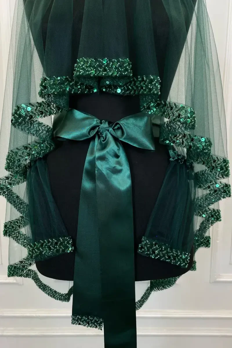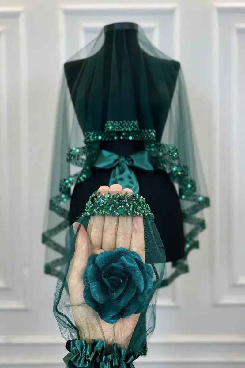 Gelin duvak seti, kına duvağı, zümrüt yeşili duvak, su taşlı duvak, gelin aksesuarı, kına gecesi, düğün, 6 parça duvak seti, zarif duvak, gelinlik duvak
