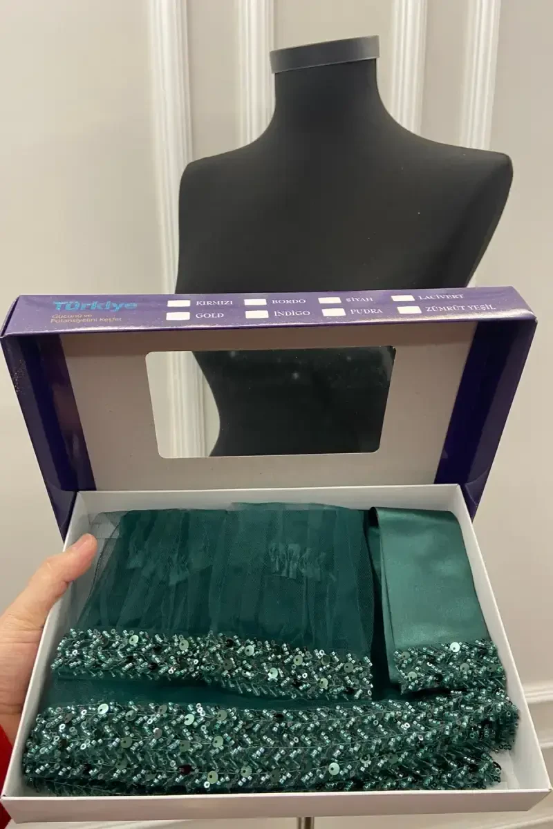 Zümrüt Yeşili Gelin Kına Duvağı Seti - Su Taşlı 6 Parça