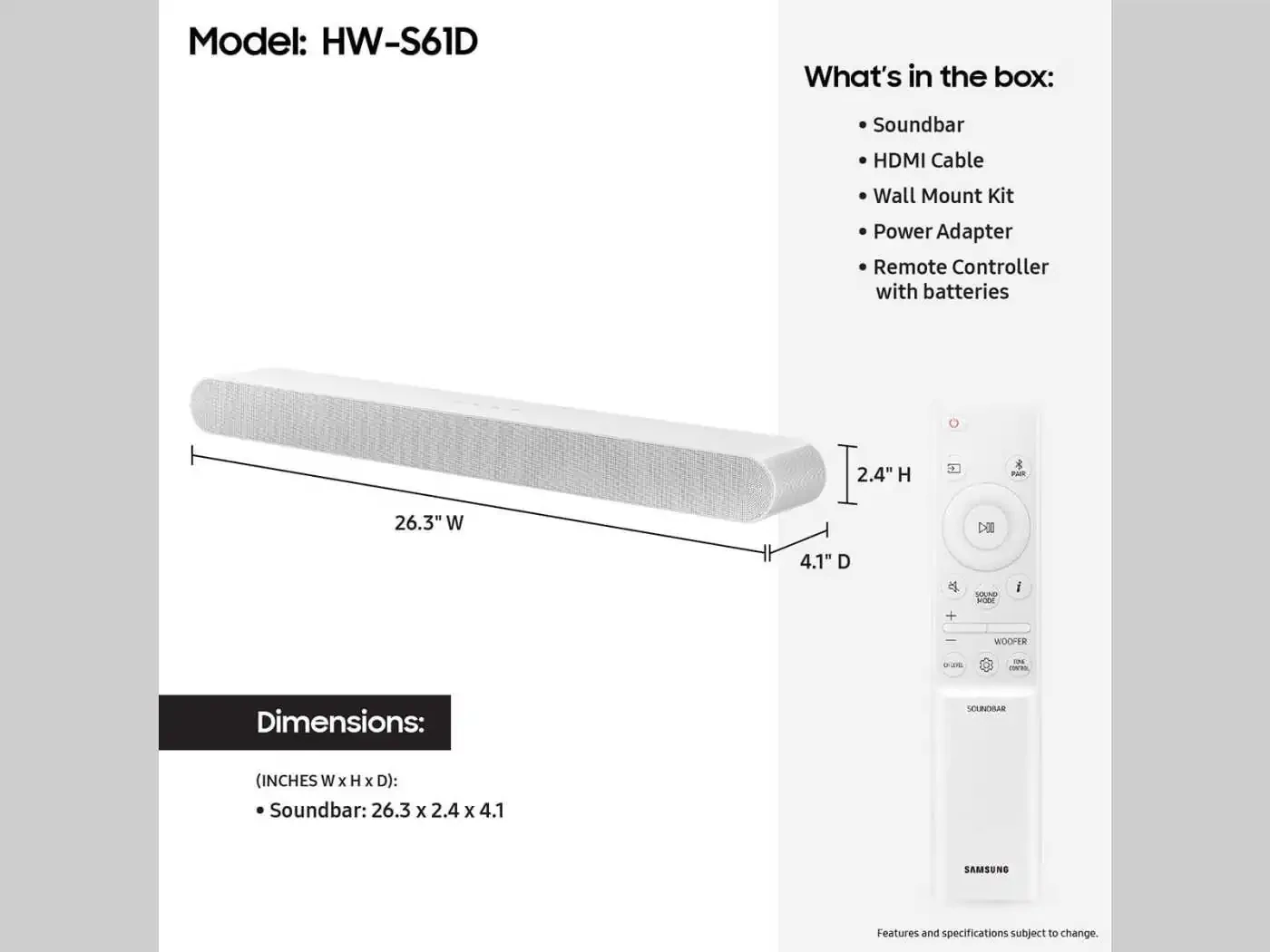 Наслаждайтесь кинематографическим звуком дома с помощью звуковой панели Samsung HW-S61D/ZA Bluetooth 5-канальный